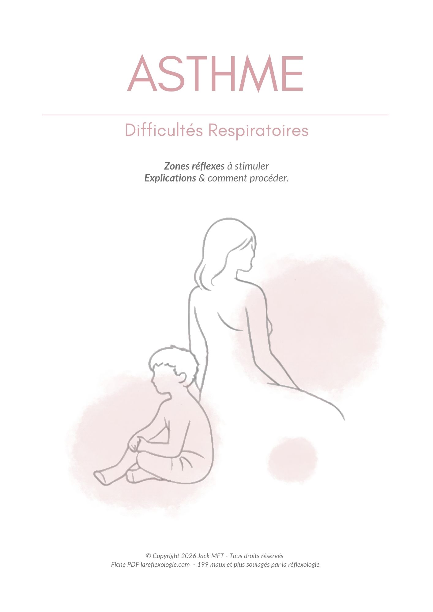 Fiche Asthme avec les zones réflexes à cibler, la méthode pas à pas et les illustrations pour améliorer la respiration et apaiser les crises.